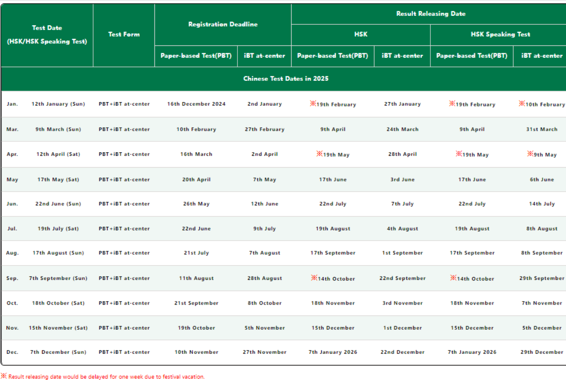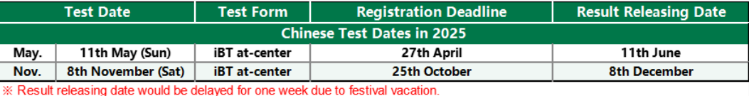Chinese Test Dates in 2025?