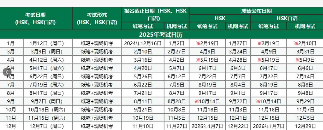 2025年HSK考试日期?